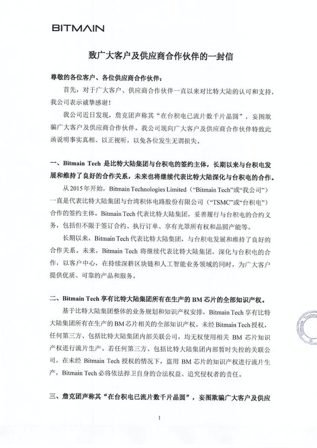 吴忌寒方面发出的另一封信,信息量比较大,它提到了詹克团能否做出矿机的核心:台积电。这家万亿市值的巨兽,或将成为比特大陆内斗的关键因素。