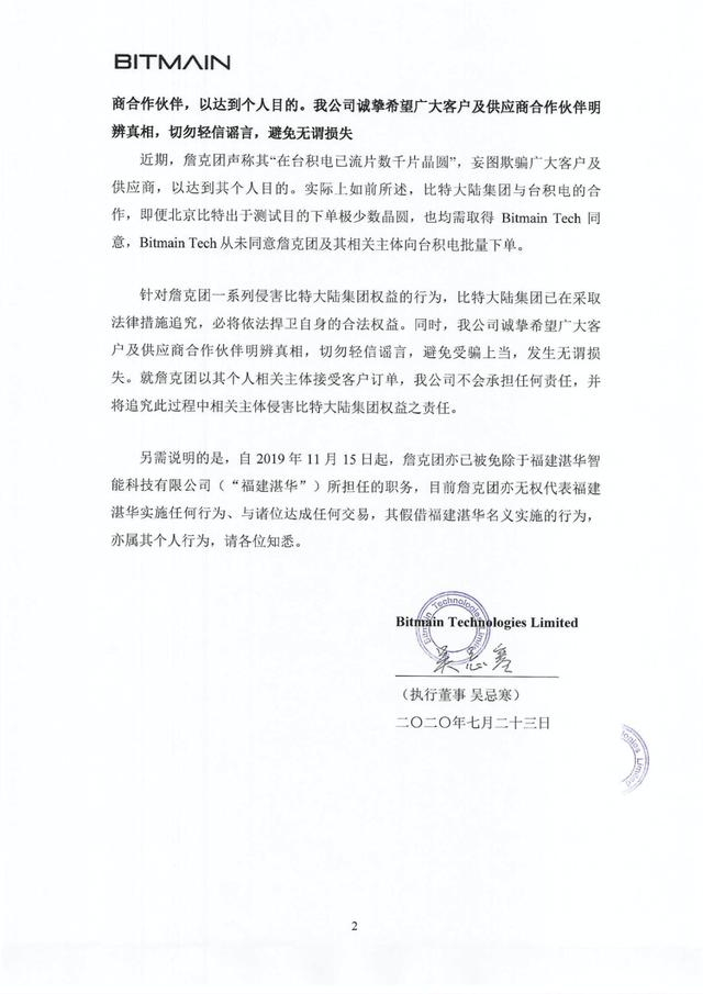 2:吴忌寒控制香港比特一直是比特大陆集团与台积电的签约主体。