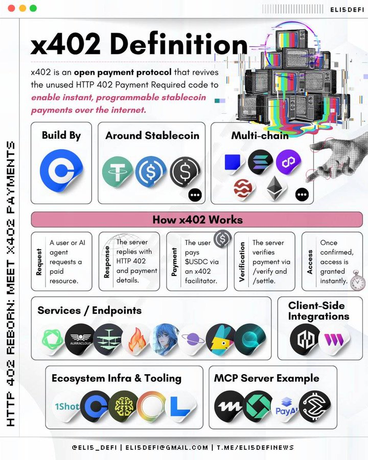 所以,这件事大概是,Coinbase 搞了一个支付协议,传统支付巨头和科技公司纷纷加入,AI 项目开始扎堆集成。