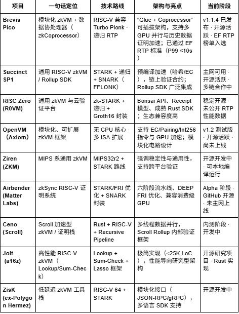 zkVM 竞品项目对比(截至 2025 年 10 月)