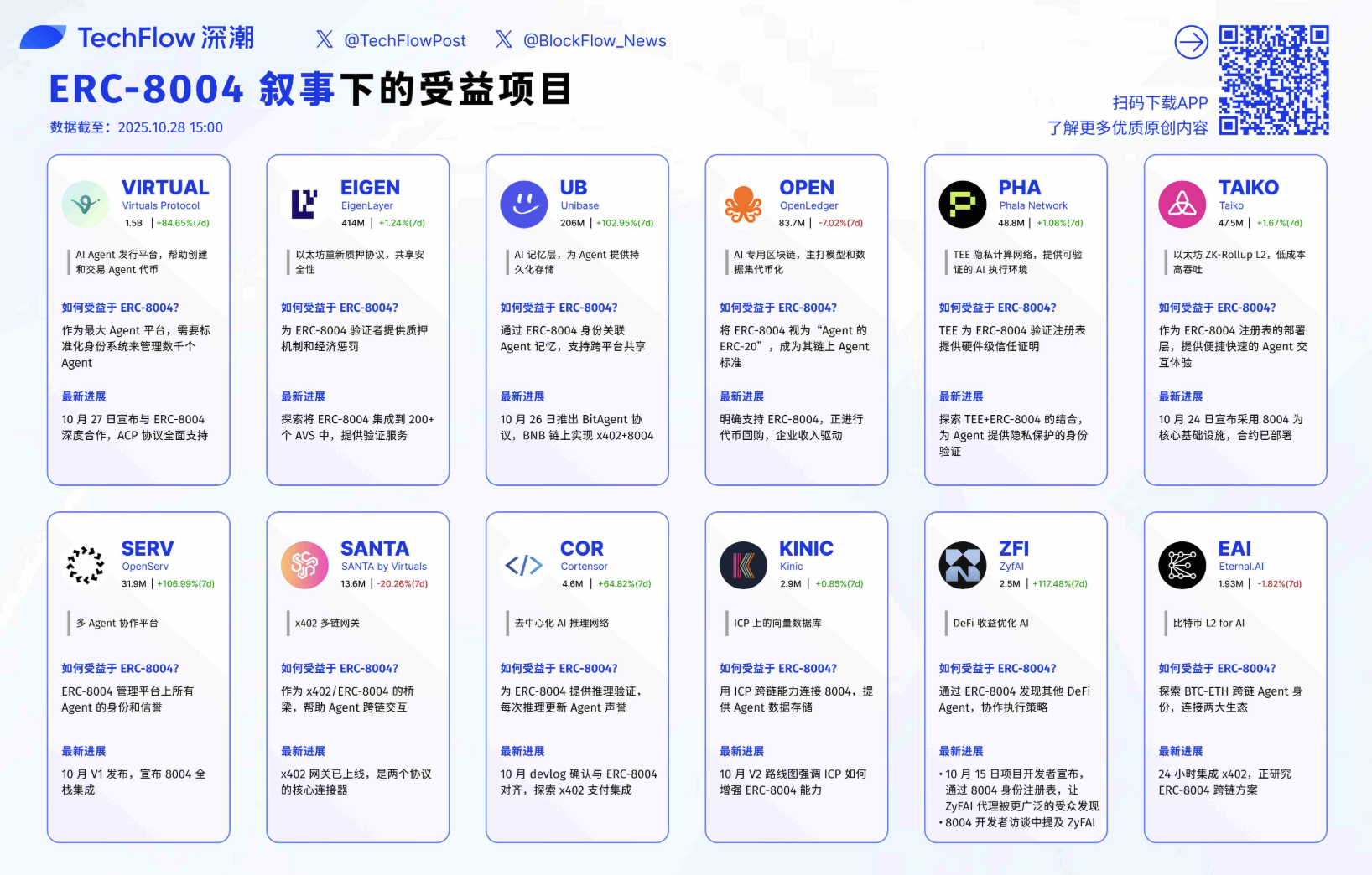 x402 爆发时,最先涨的是 PING 这样的支付代币。但 ERC-8004 的机会分布更广,从基础设施到应用,每一层都有自己的逻辑。理解这个逻辑,比追逐单个项目更重要。