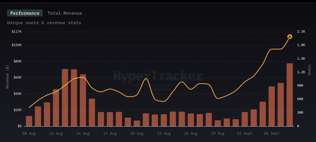 总体而言,所有相关移动交易前端(包括部分未提及的应用)的每日合并平均收入约为 5 万美元,相当于约 150 万美元的月经常性收入(MRR)。这些应用约占 Hyperliquid 永续合约总交易量的 3%-6%。作为参照,Hyperliquid 的 HLP 保险库占比约为 5%。