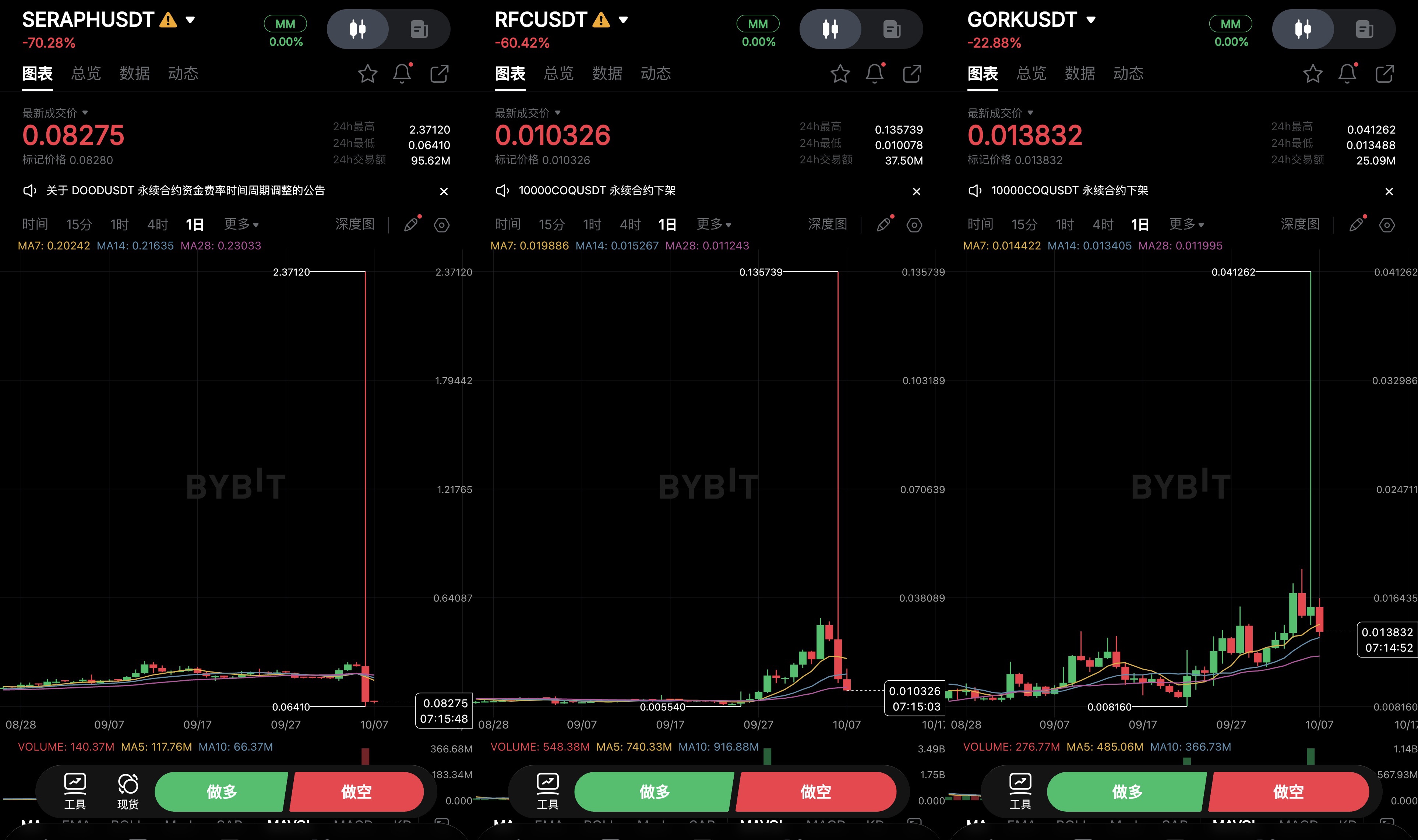 Bybit:SERAPHUSDT 等永续合约异常波动由流动性骤降引发,系统运行正常