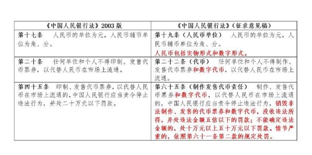 1:在解释说明中称:《征求意见稿》规定人民币包括实物形式和数字形式,为发行数字货币提供法律依据;防范虚拟货币风险,明确任何单位和个人禁止制作和发售数字代币