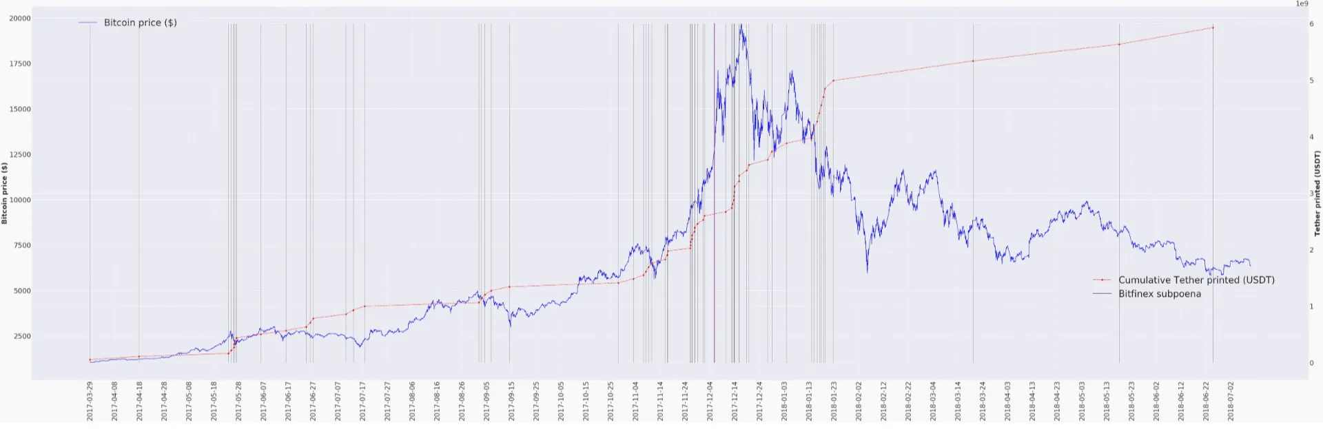 2018 年 6 月,金融教授约翰·格里芬 (JOHN M. GRIFFIN) 发表了 Is Bitcoin Really Untethered ? 证明了在那期间,USDT 可以随便烂印而购买 Bitcoin 来当作抵押资产,随意拉抬比特币价格……