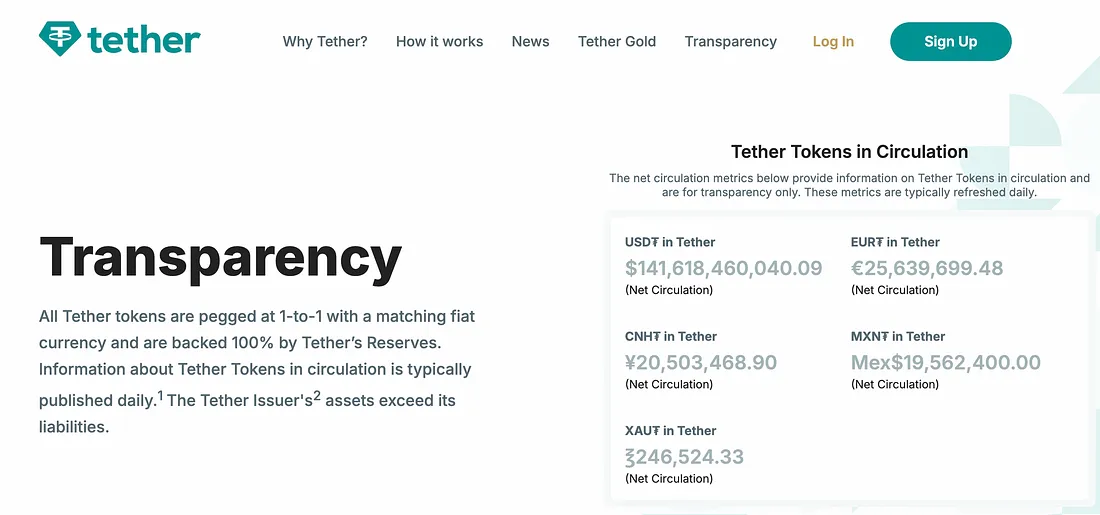 Tether 官方网页 USDT CNHT EURT MXNT 总发数量